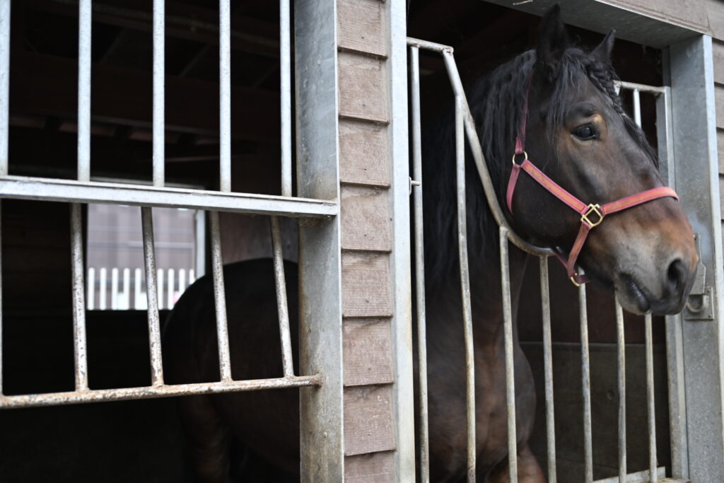 ばんえい馬は北海道の広大な農地を耕す、農耕馬の歴史から始まっていることがわかる。人々の日々の生活から切り離せない存在がさらに乗馬(ばんえい競馬)へ姿を変えていったのだ。