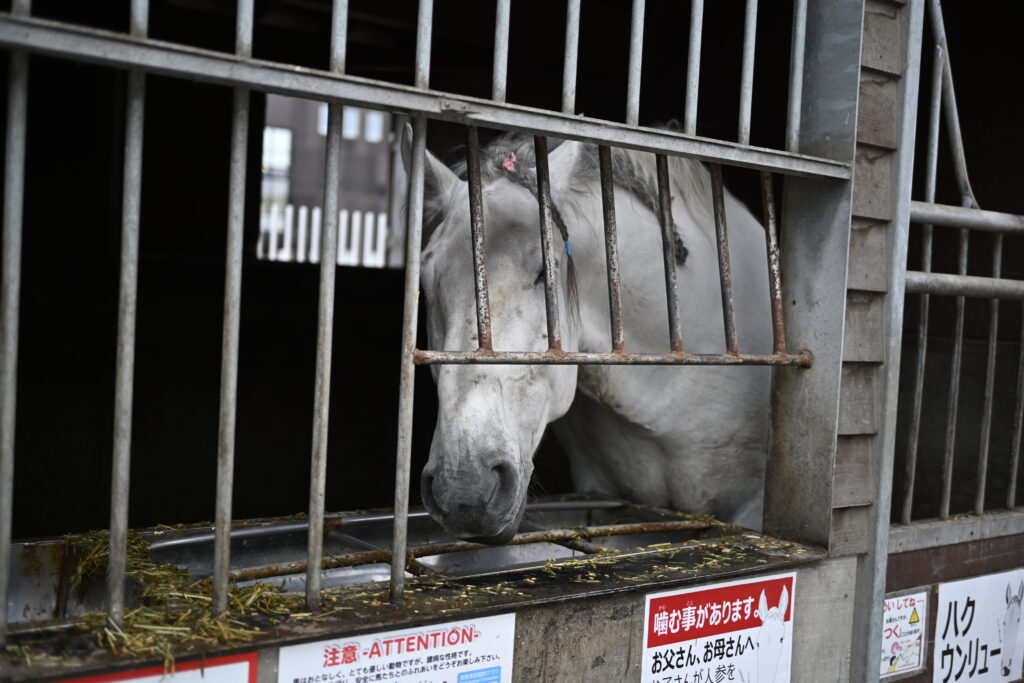 競馬場の中には厩舎も設置されており、ばんえい馬やヤギといった生き物たちに会うことが出来た。