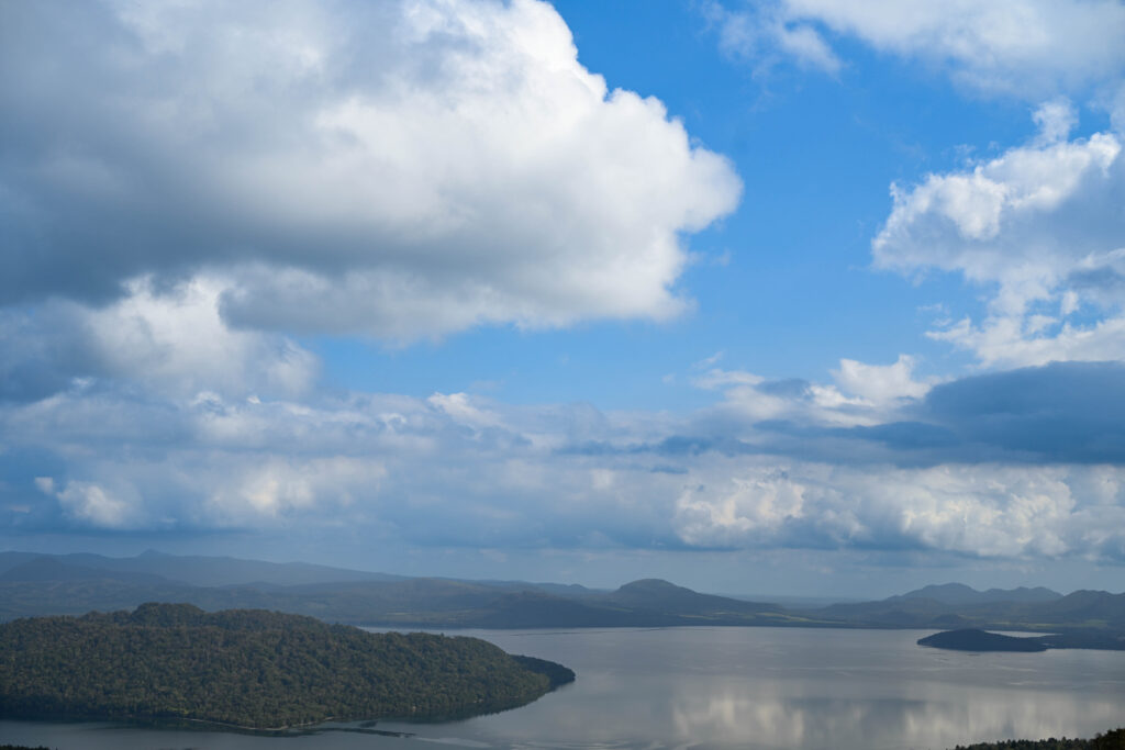 朝日に照らされて目を覚まし、車の外に出ると昨日とはうって変わって清々しい晴れた空が垣間見えた。